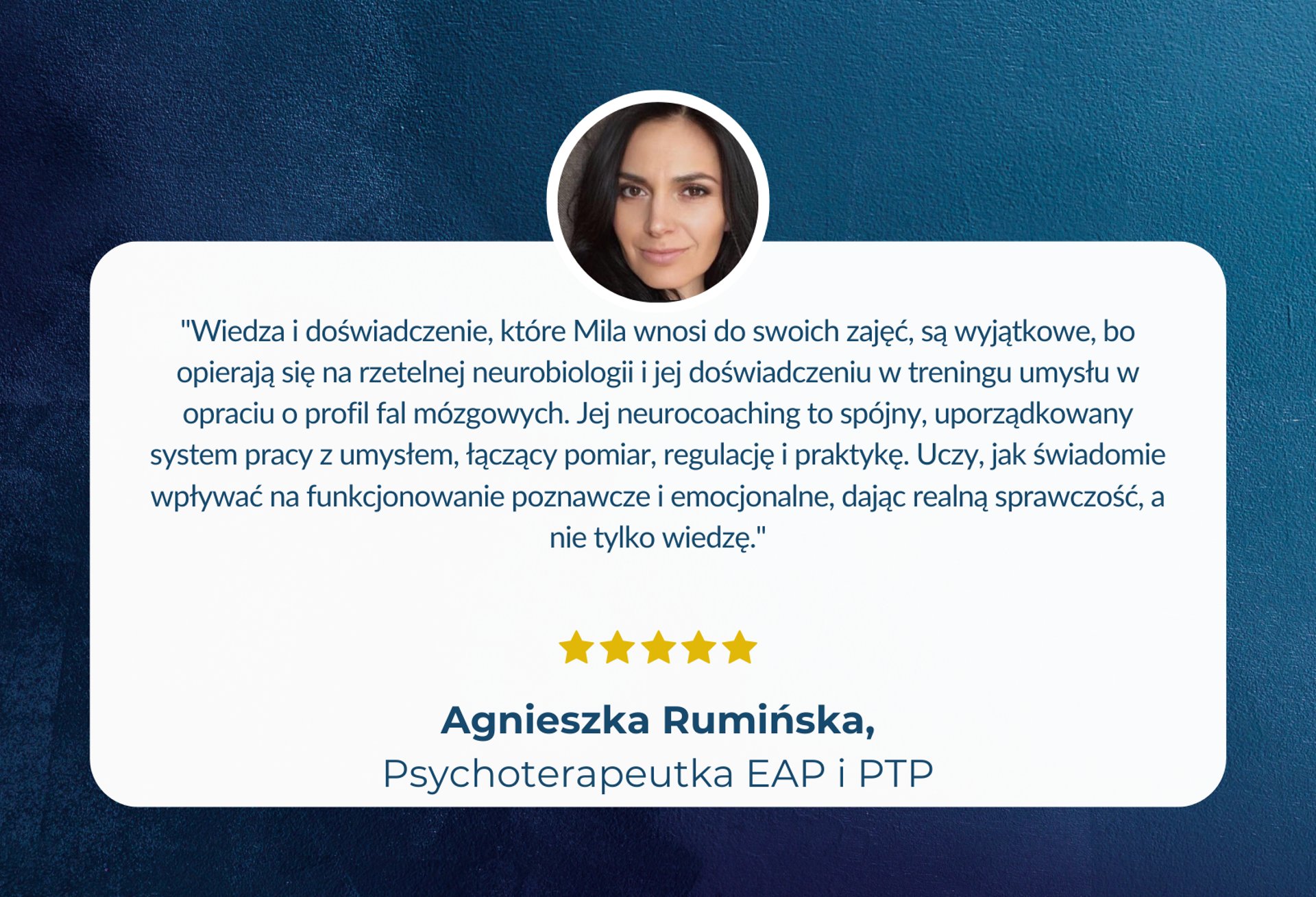 Przekażę Ci sprawdzony sposób praktycznego zastosowania tej wiedzy — a jeśli zechcesz, także pracy z technologiami EEG i biofeedbacku. Bez ślepych uliczek, bez przepłacania za sprzęt i bez kosztownych, niepotrzebnych szkoleń. Po to, by realnie podnieść jakość pracy z człowiekiem i ułatwić Ci codzienną praktykę.